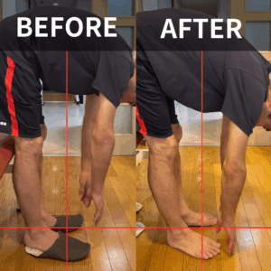 これは、どこへ行っても改善しなかった腰痛を抱えていた20代男性(飲食業)の施術のbefore→afterです。